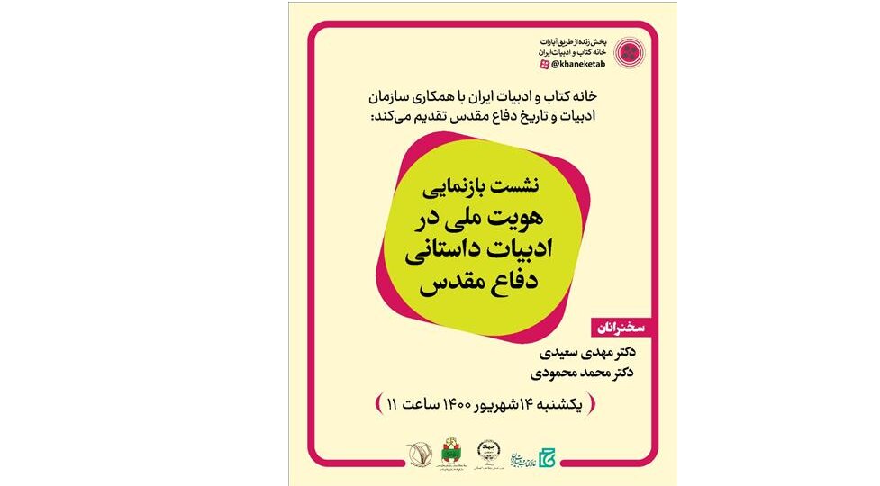 به گزارش ایسنا به نقل از روابطعمومی خانه کتاب و ادبیات ایران، این نشست از سوی خانه کتاب و ادبیات ایران با همکاری سازمان ادبیات و تاریخ دفاع مقدس روز شنبه (۱۶ شهریورماه ۱۴۰۰) از ساعت ۱۱ به صورت مجازی برگزار میشود.