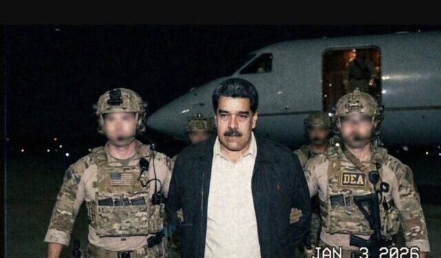 یکی از تصاویری که بیش از همه دست به دست شد، مادورو را کنار دو سرباز DEA نشان میداد. عکسی که طوری کادربندی شده بود که انگار از صفحه لپتاپ گرفته شده و تاریخ ۳ ژانویه ۲۰۲۶ نیز روی آن وجود داشت. این عکس هوشمندانه طراحی شده بود: