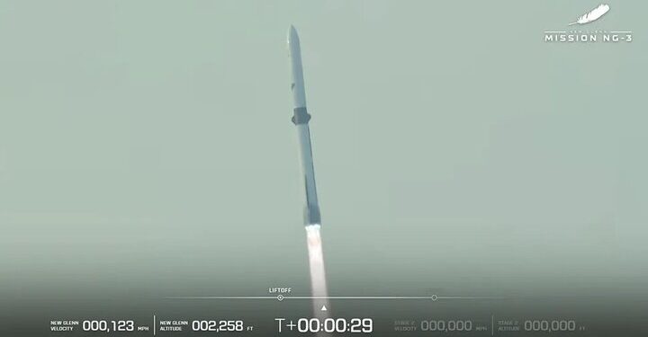 به گزارش خبرگزاری مهر به نقل از اسپیس، موشک عظیم «نیوگلن» این شرکت برای سومین بار در ۱۹ آوریل (دیروز) به فضا پرتاب شد. برای نخستین بار این موشک با کمک یک سخت افزار که قبلا نیز استفاده شده بود، به مدار زمین رفت. این ماموریت که NG۳ نام دارد محموله عظیم «بلو برد ۷» که یک ماهواره اینترنتی direct to cell است را به مدار پایین زمین برد. بوستر نخست این موشک قبلا در ماموریت NG۲ استفاه شده بود اما در ماموریت جدید موتورهای تازه ای در آن به کار رفته بودند.